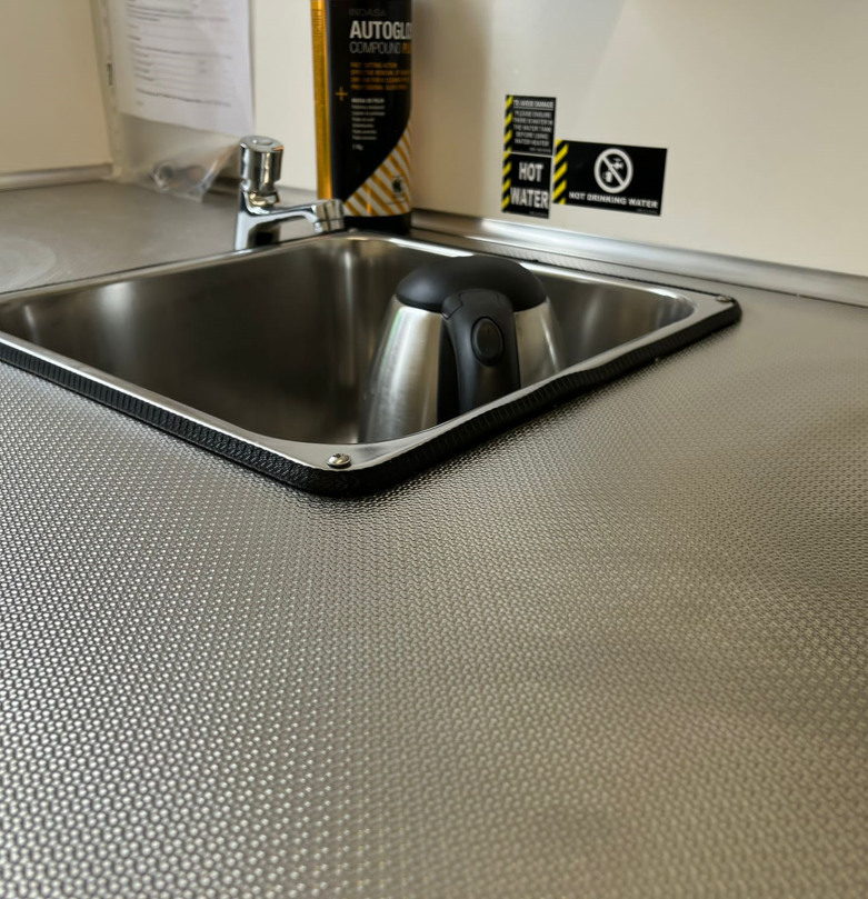 Parece imposible que dentro de una furgoneta tan pequeña se pueda meter una cocina completa como para poder ofrecer comida pero así es, y este un ejemplo perfecto. A pesar de sus pequeñas dimensiones, está totalmente equipada y aunque no tenemos fotos del interior de esta en concreto, han utilizado el acabado 13SD para las zonas de trabajo.