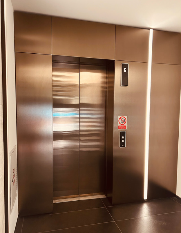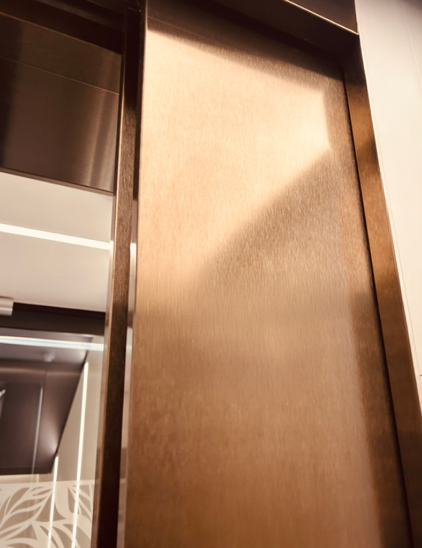 En este proyecto se ha utilizado ColourTex Bronze Satin para revestir el frente del ascensor. El resultado es una integración elegante con la arquitectura interior, aportando calidez, modernidad y durabilidad a zonas comunes de tránsito.